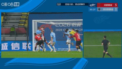 赛事 第86分钟,新鹏城外援奥乌苏在危险区域 内争抢顶球时倒地,随后VAR介入,主裁判 王迪在前往场边查看后,示意不是十二码球,赛事 继续。